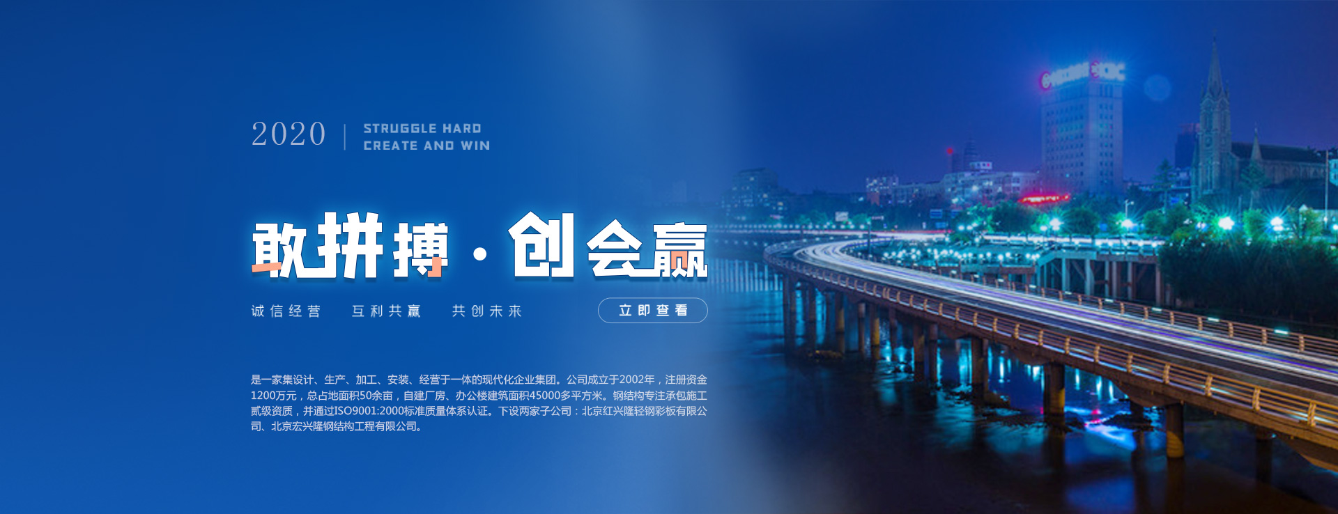 是一家集設計、生產、加工、安裝、經營于一體的現代化企業集團。公司成立于2002年,注冊資金1200萬元,總占地面積50余畝,自建廠房、辦公樓建筑面積45000多平方米。鋼結構專注承包施工貳級資質,并通過ISO9001:2000標準質量體系認證。下設兩家子公司:北京紅興隆輕鋼彩板有限公司、北京宏興隆鋼結構工程有限公司。集團總部位于八達嶺高速公路定泗橋西側彩鋼結構大市場院內11號。我公司擁有先進的科學技術、標準的工程技術人員、標準的設計團隊、精良的施工隊伍、完善的管理體系公司以先進的科學技術、精湛的施工/工藝、優質的售后服務回報社會,服務企業,與您攜手走向輝煌。主要承接各式大型鋼結構車間、廠房、冷庫、拱型屋頂、工地臨建、屋面平改等。鋼結構工程及輕鋼材產品已輻射到新疆、內蒙、黑龍江、遼寧、吉林等國內多個省市以及俄羅斯、蒙古、非洲等國外十多個國度和地區綠色環保是我們的保證,匠心獨運、色彩鮮明是我們的面貌。